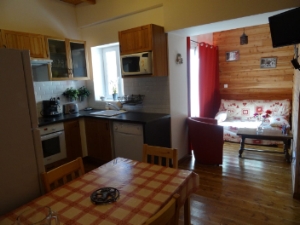 Coin cuisine : cuisine équipée + réfrigérateur/congélateur + micro-ondes et four + lave vaisselle + table ..